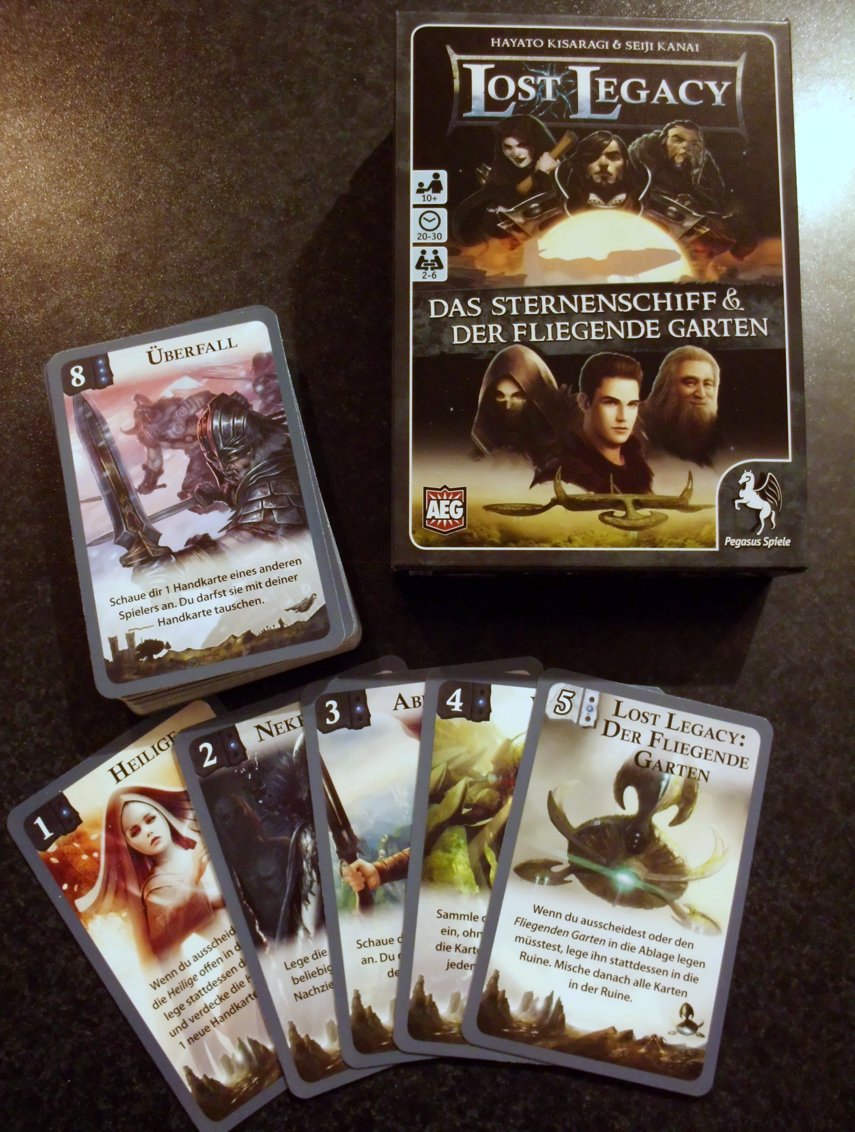 Wenn Ihr Love Letter mochtet, dann hat der Autor jetzt etwas neues für euch. Bei Lost Legacy Das Sternenschiff und Der fliegende Garten, wird das beliebte Spielprinzip von Love Letter verändert und in eine ferne Vergangenheit verlegt. Das tolle an der deutschen Version ist, Ihr bekommt zwei Spiele in einer Box die sich beliebig miteinander kombinieren lassen. Also kommt vorbei und begebt euch auf die Suche nach der Lost Legacy.