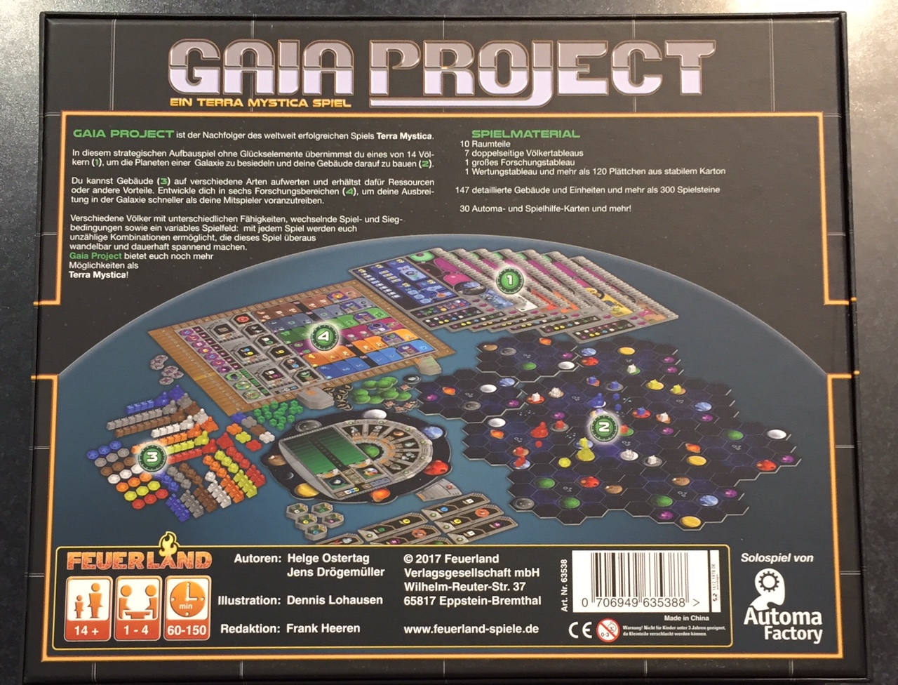 In diesem Jahr hat es das Messehighlight schon vor der Messe in unseren Laden geschafft. Das Spiel Gaia vom Feuerland Verlag ist heute bei uns angekommen. Das Spiel ist ein Nachfolger vom bekannten Terra Mystica. Es führt dabei aber eine Reihe von guten Änderungen zu dem Spiel ein und versetzt die Spieler in den Weltraum. Für uns das Spiel auf das wir uns am meisten gefreut haben.