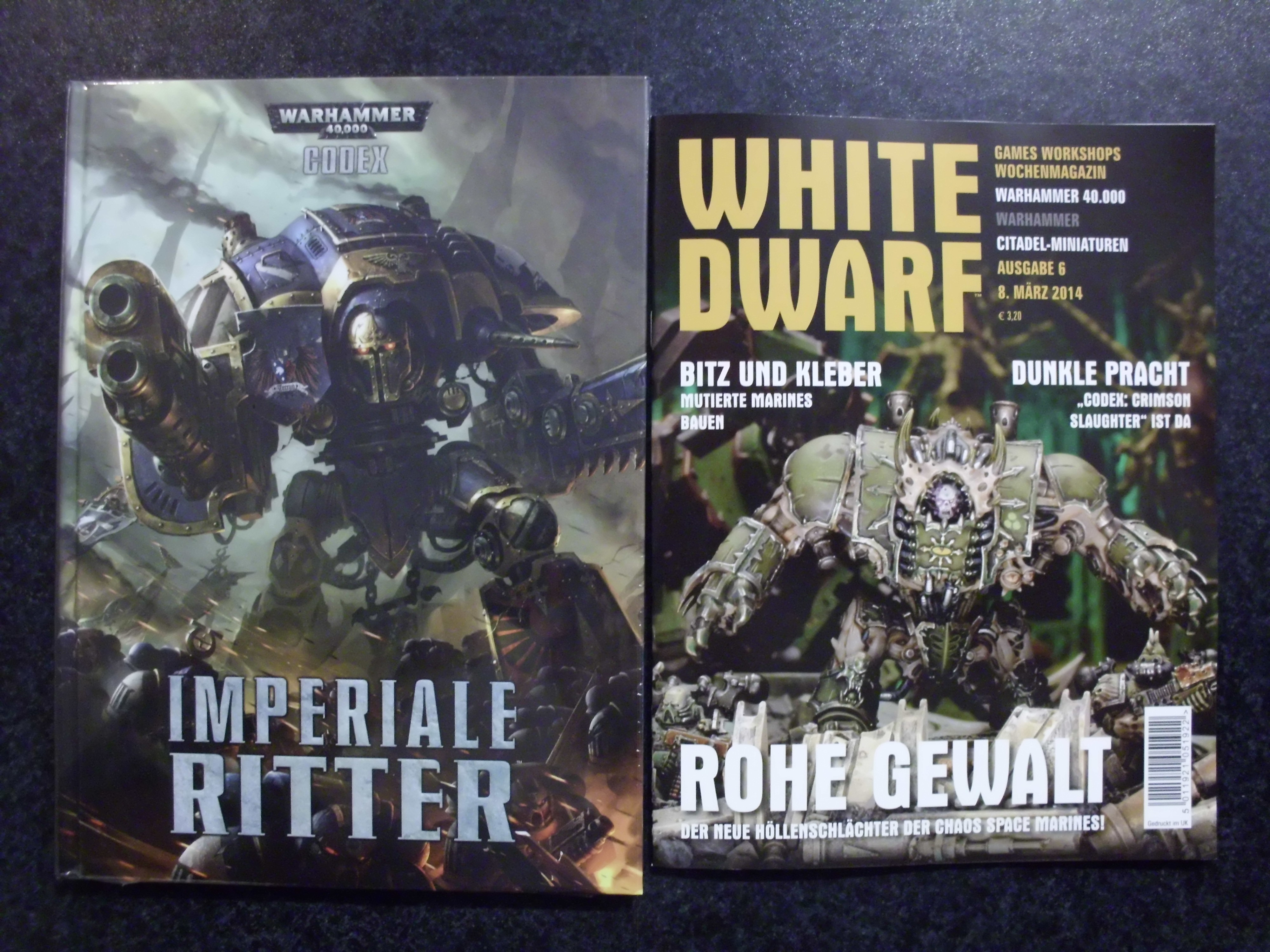 Ab jetzt könnt ihr bei uns den Codex Imperiale Ritter bekommen und im neuen White Dwarf einen Ausblick auf die Neuerscheinungen für die Chaos Space Marines werfen. Endlich gibt es einen neuen Bausatz für die Hellbrute!