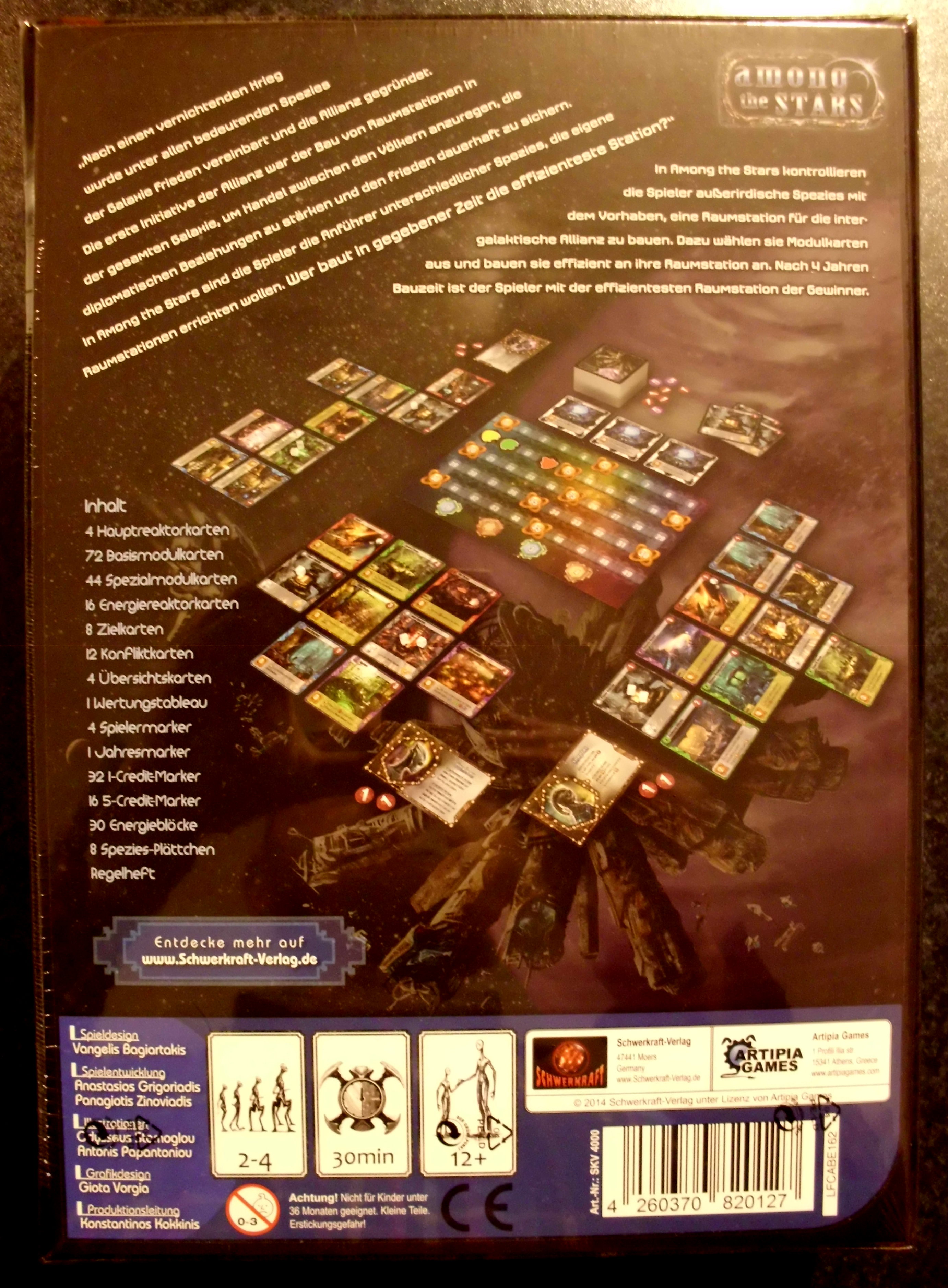 Among the Stars schickt euch in den Weltraum um eine Raumstation zu bauen, das Spiel nutzt den Kartenmechanismus den ihr aus Spielen wie 7 Wonders kennt.