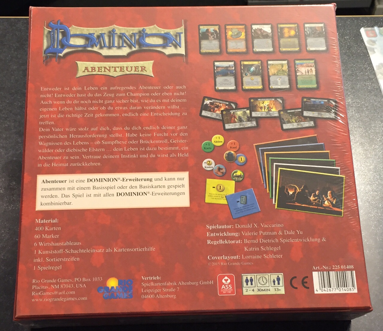 Es wurde Zeit für ein neues Abenteuer. In der neuen Dominion Erweiterung stürzen wir uns in ein aufregendes Abenteuer. Dabei müssen wir uns mit Riesen und Trollen herumschlagen. Die Erweiterung bietet viele neue Spielelemente und ein neues Dominion Spielgefühl.