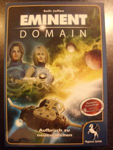 Eminent Domain vereint zwei beliebte Kartenmechanismen: Rollenwahl und Deckbau. Dadurch ensteht ein neues Spielgefühl da alle Spieler auch im gegnerischen Zug ins Spielgeschehen eingebunden sind und man somit dauernd am Spiel beteiligt ist.