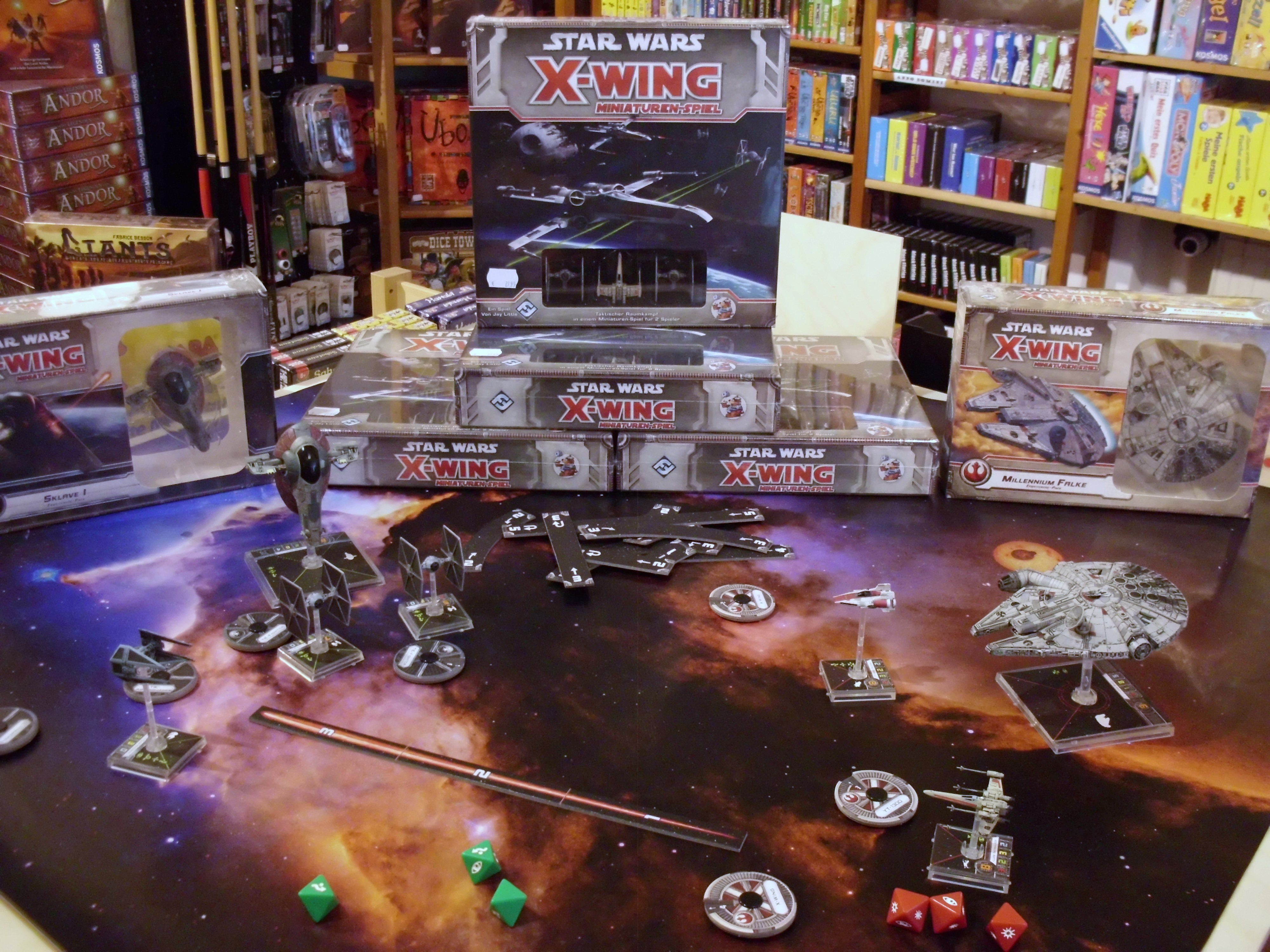 Heute ist bei uns die 2 Welle des X_wing Miniaturenspiels bei uns eingetroffen. Diese beinhaltet den Slave 1, Millennium Falcon, A-Wing und den Tie-Interceptor.